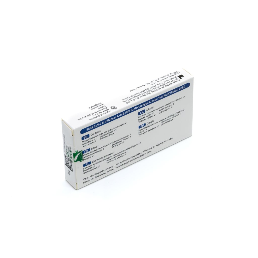 Exkluzivní antigenní test pro domácí použití na pět respiračních patogenů z jednoho výtěru z nosu. Výsledek do 10 minut bez nutnosti laboratorního vybavení. Certifikováno dle IVDR. Tento produkt je distribuován výhradně společností Czech Original Products s.r.o. a je vhodný pro samotestování.